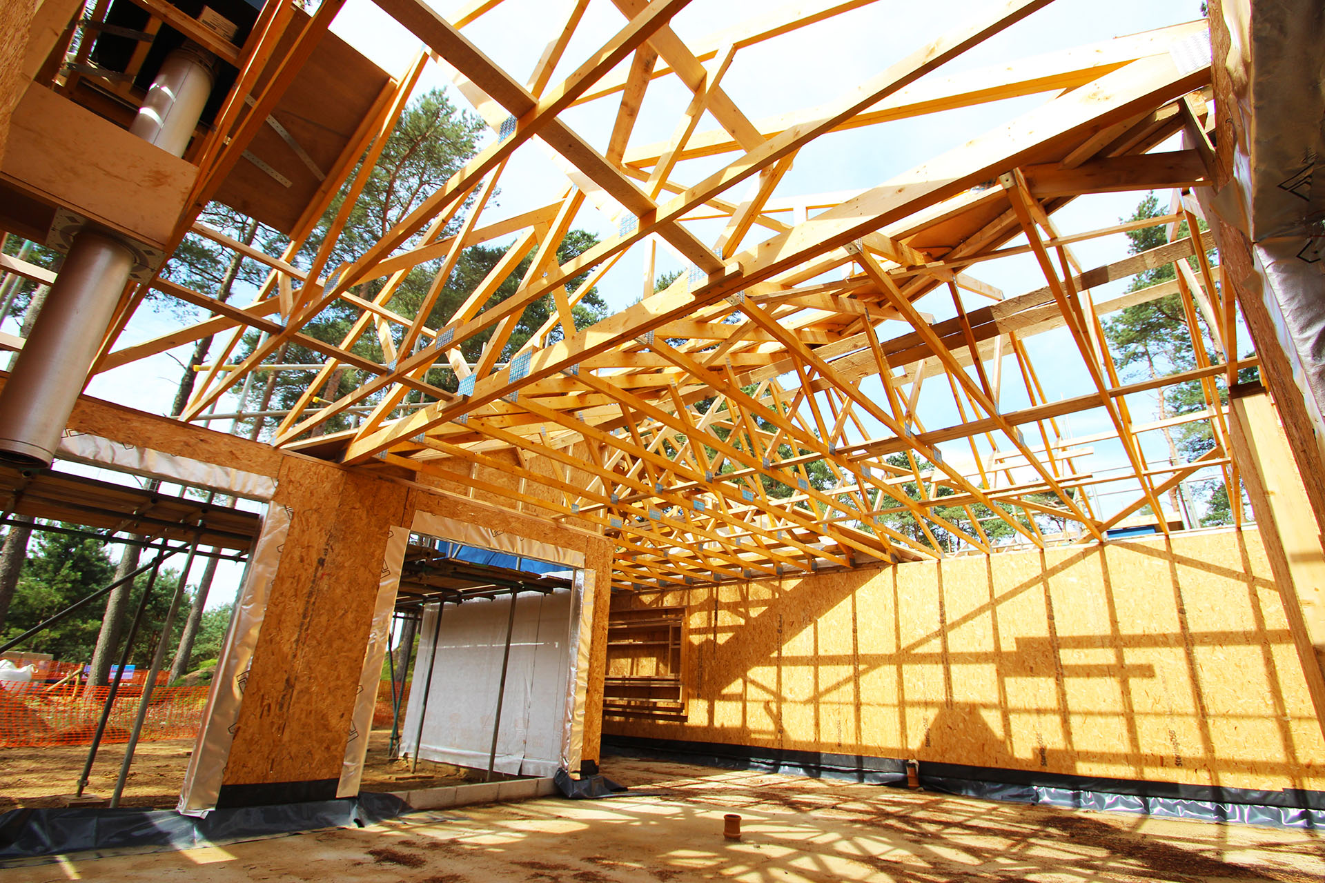 The DTE Ilkeston team was required to supply a massive 20,000 roof trusses for 625 forest lodges within a rapid build programme. The heavily wooded site made access difficult for lorries and cranes, so the team had to manufacture and deliver the roof trusses under strict guidance. This essentially meant planning much further in advance than normal, and also preparing additional packaging and lifting aids, to ensure the build process was as smooth as possible.