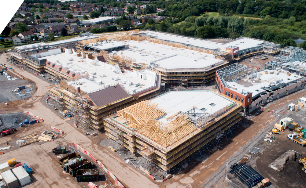 Mill Green Outlet Village is a brand-new McArthur Glen Designer Outlet based in Cannock, Staffordshire. The project consisted of eight large blocks covering an area of approximately 27,000m2, with all blocks constructed from steel portal frames split over multiple levels.