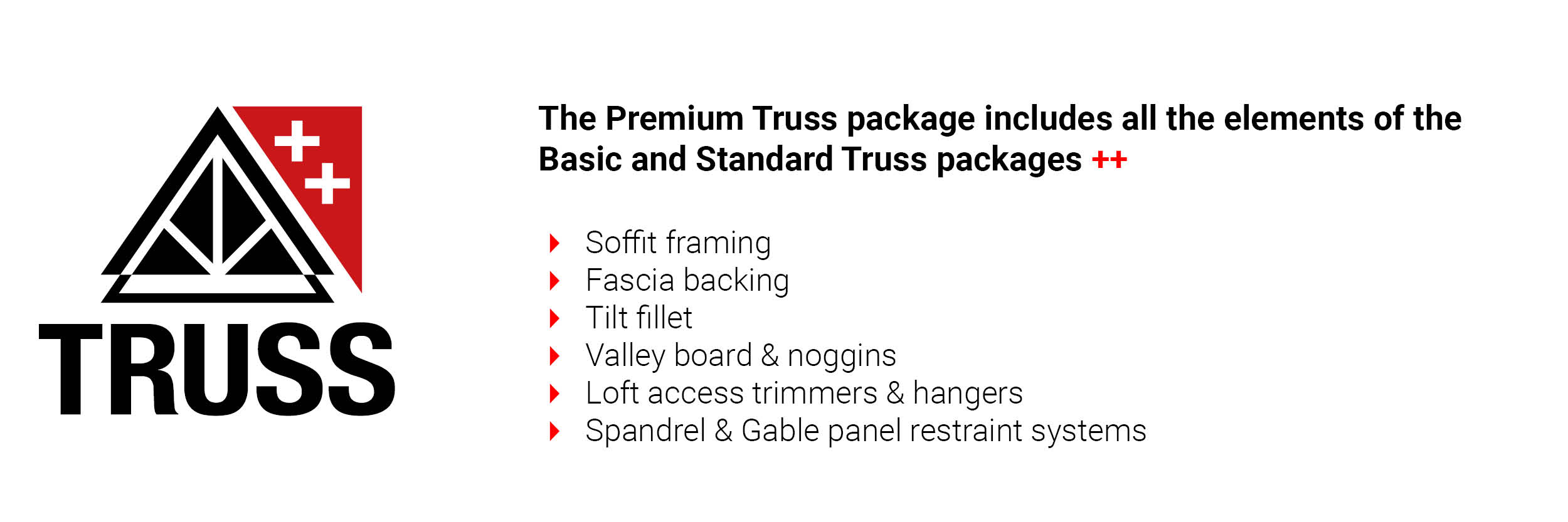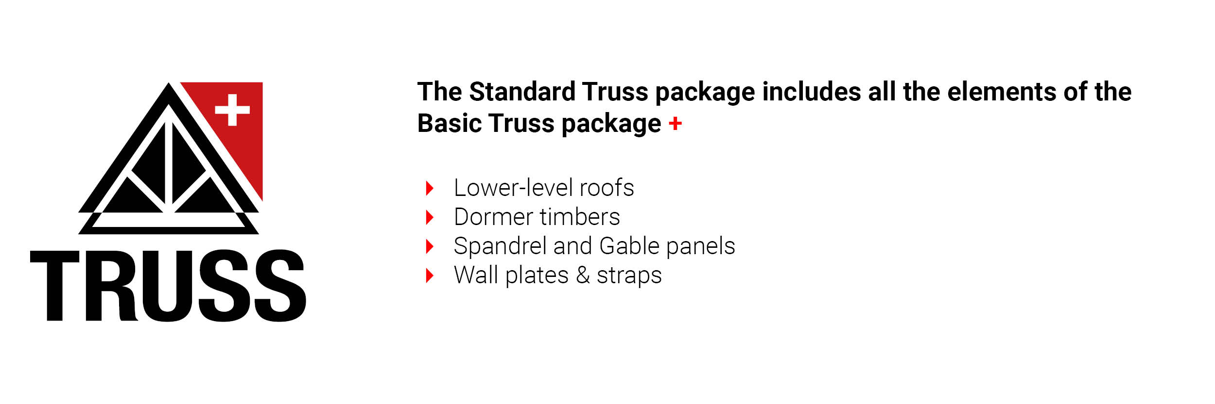 With attic roofs, this type of truss package includes chipboard flooring for the attic floor and plywood for the dormer cheeks. With areas of flat roof, it includes flat roof firrings and flat roof plywood.