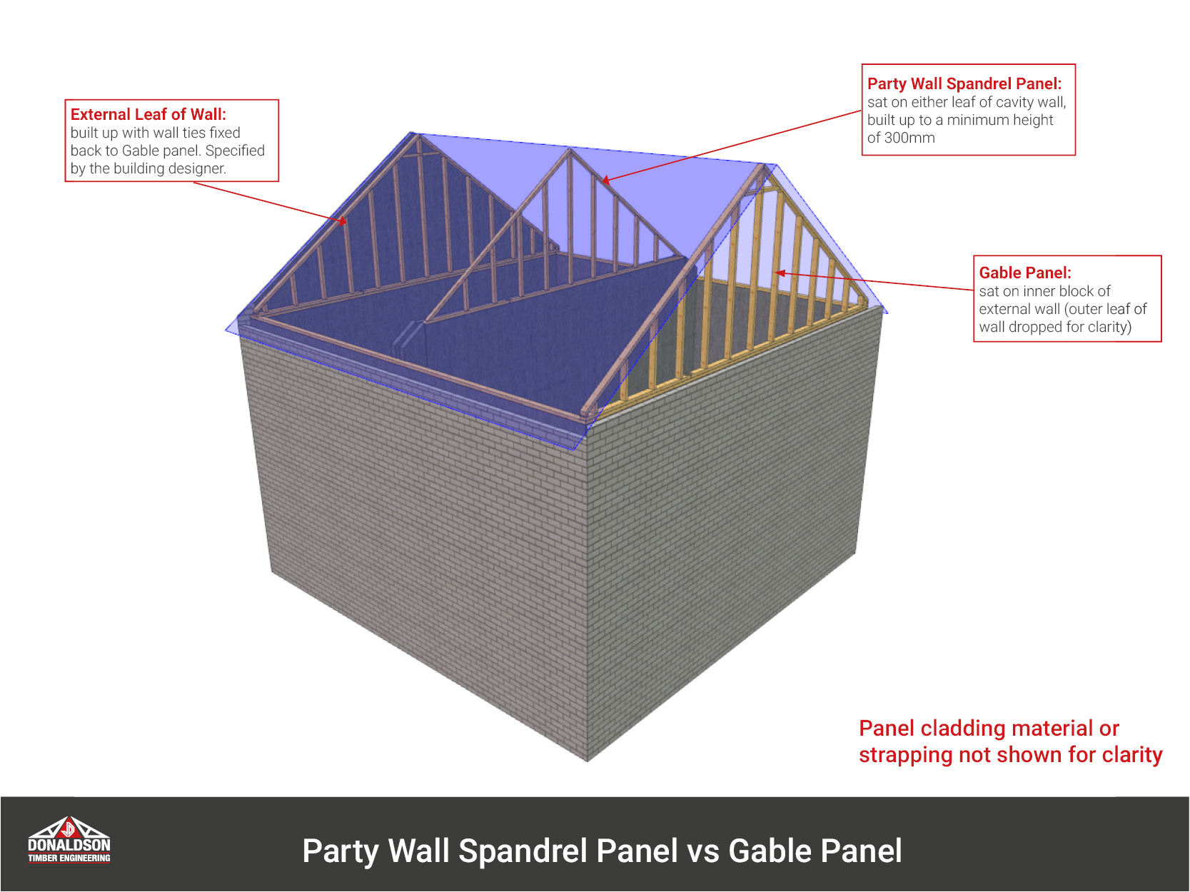 The graphic below provides a simple illustration of the difference between party wall panels and gable wall panels: