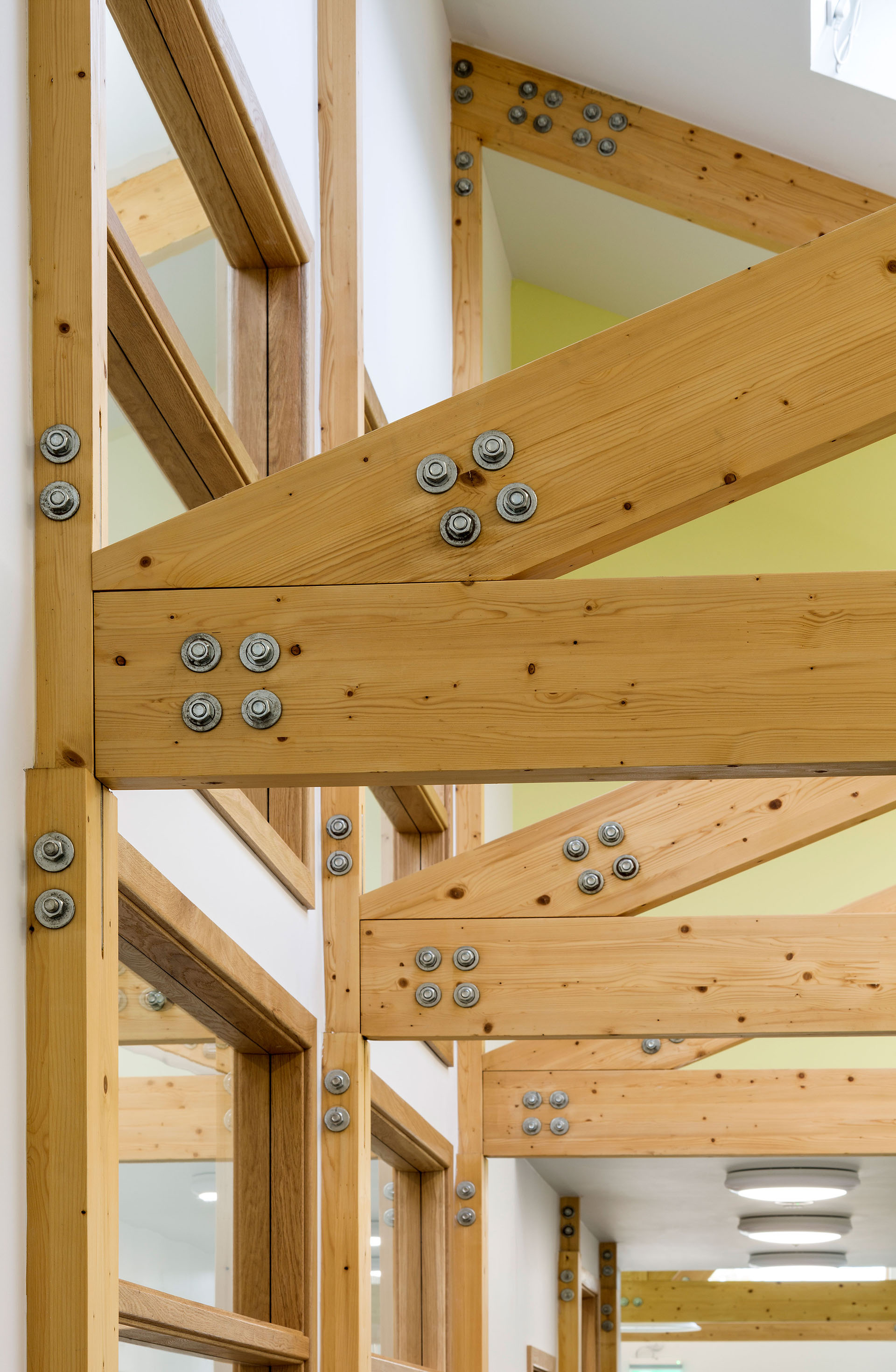 Feature trusses (Glulam, oak and kerto): used when trusses are to be visible as a decorative feature. These trusses can have steel connector plates, bolted connections at each joint or can be formed using mortise and tenon joints and can also be designed to be both structural and decorative.